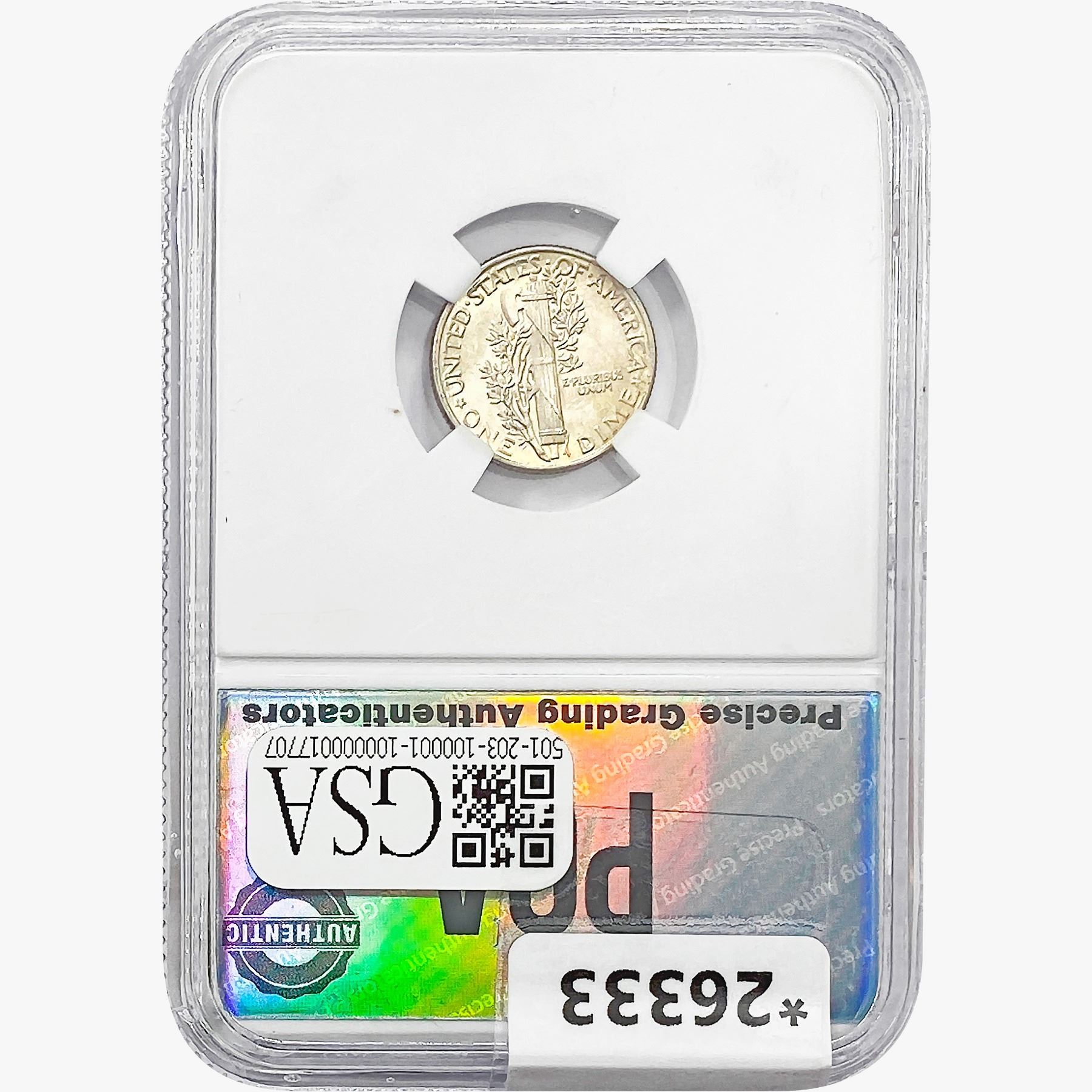 COINS AND CURRENCY LISTED IN GSA’S CATALOG AS GRADED AND ENCAPSULATED BY PCGS, NGC, ANACS, ICG, PCGS CURRENCY, PMG, PCGS BANKNOTE GRADING, CMC OR ANY OTHER THIRD-PARTY GRADING SERVICE ARE LIKEWISE SOLD “AS-IS” EXCEPT AS EXPRESSLY SET FORTH HEREIN. ALL THIRD-PARTY GRADING SERVICE GUARANTEES, INCLUDING AUTHENTICITY, ARE THE SOLE RESPONSIBILITY OF THE THIRD-PARTY GRADING SERVICE AND NOT WARRANTIES OR GUARANTEES OF GSA. BIDDERS SHOULD CONTACT THESE THIRD-PARTY GRADING SERVICES DIRECTLY WITH RESPECT TO ANY CLAIMS OR QUESTIONS THEY MAY HAVE CONCERNING THEIR GUARANTEES AND WARRANTIES. BIDDERS ACKNOWLEDGE AND AGREE THAT AUCTIONEER IS NOT BOUND BY OR LIABLE FOR ANY OPINION OR CERTIFICATION BY ANY THIRD-PARTY GRADING SERVICE. REMOVAL OF A PRODUCT FROM ITS PROTECTIVE CASING OR HOLDER OR ALTERATION OF ANY COIN HOLDER WAIVES ALL RIGHTS CONCERNING THE PRODUCT CONTAINED THEREIN.