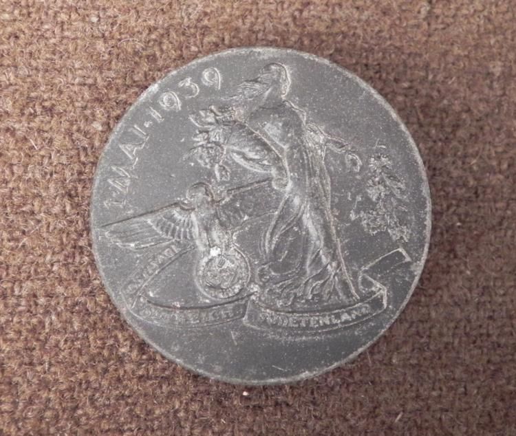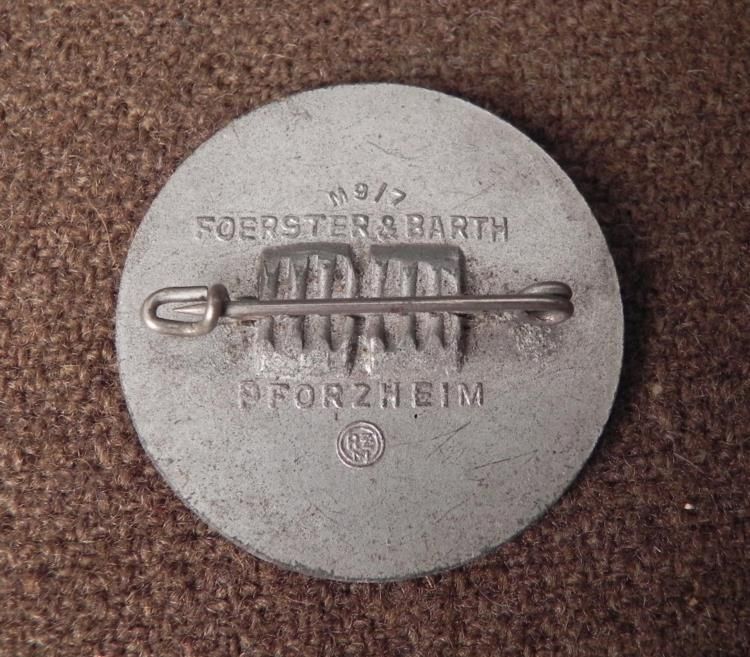 1939 NAZI MAY DAY MEDAL-ORIG-SHOWS MAIDEN W/EAGLE & SWASTIKA-MAKER MARKED * REVERSE READS "M9/7--FOERSTER & BARTH--PFORZHEIM-RZM"--PINBACK *