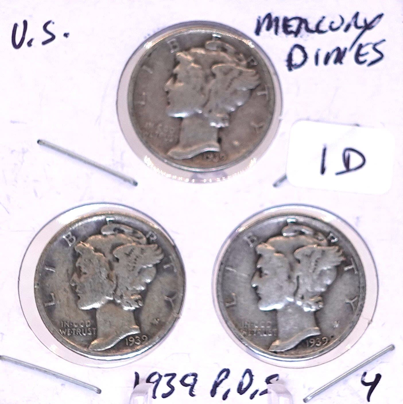 1939 P, D, S Mercury Dime Set