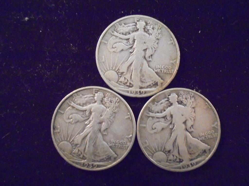 1939 P/D/S WALKING LIBERTY HALF DOLLARS