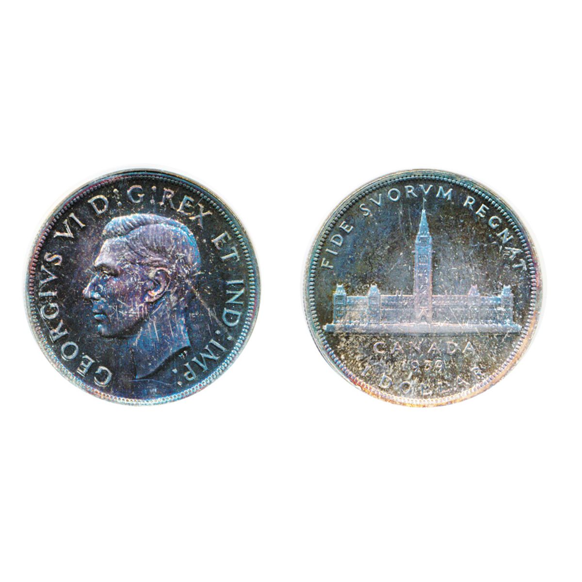 1939. PCGS graded Matte SPECIMEN-66. Superb and intense violet toning. Satiny matte obverse, with a mirror reverse.