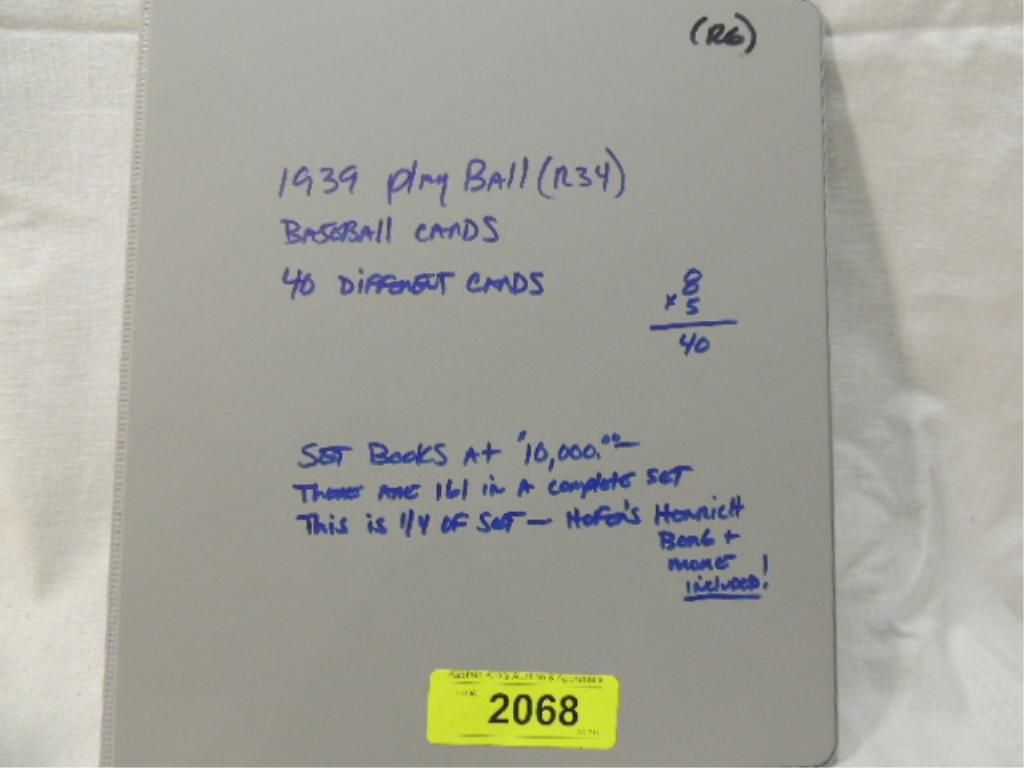 AMAZING BINDER FULL 1939 PLAY (R34) BASEBALL CARDS. 40 DIFFERENT CARDS. THERE ARE 161 IN A COMPLETE SET. THIS IS 1/4 OF A SET. HALL OF FAMERS. HEINRICH, BERG AND MORE. LOOK THIS SET OVER CAREFULLY!!