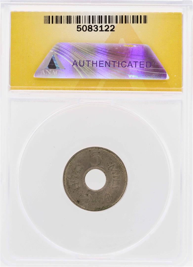One 1939 Palestine 5 Mils Coin ANACS MS60. ANACS Certified.