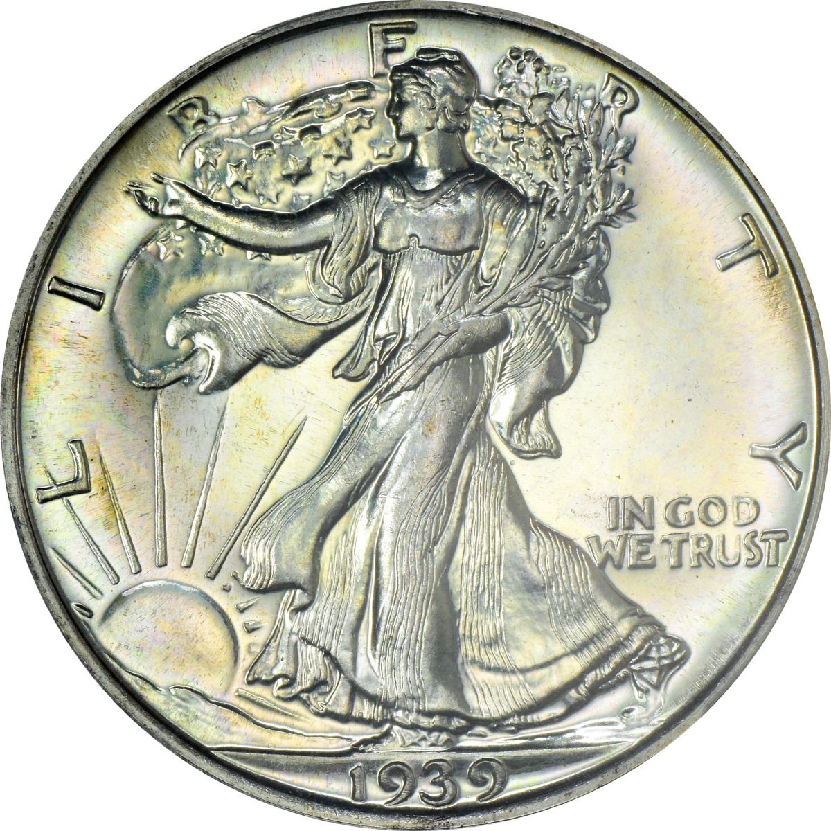 Fully brilliant and intensely lustrous with a whisper of bright blue iridescence that springs to life in a bright light source. The central devices are faintly frosted and add measurably to the overall eye appeal. PCGS #6639
