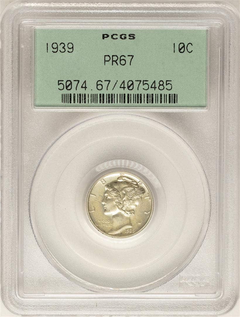 One 1939 Proof Mercury Dime Coin PCGS PR67 Old Green Holder. PCGS Graded.
