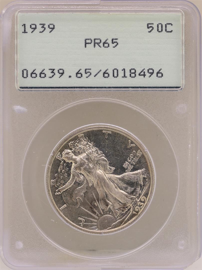 1939 Proof Walking Liberty Half Dollar Coin PCGS PR65 Old Green Rattler