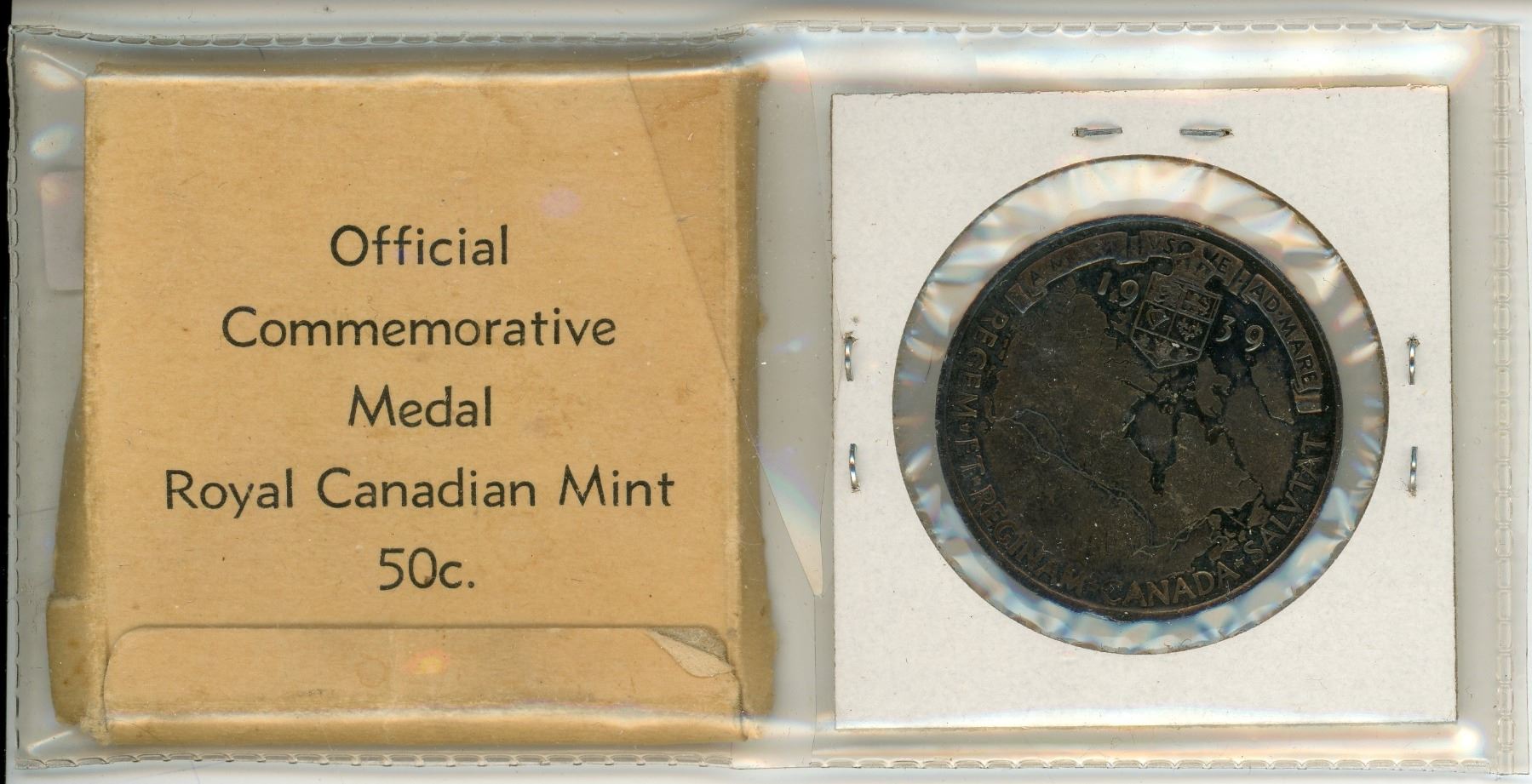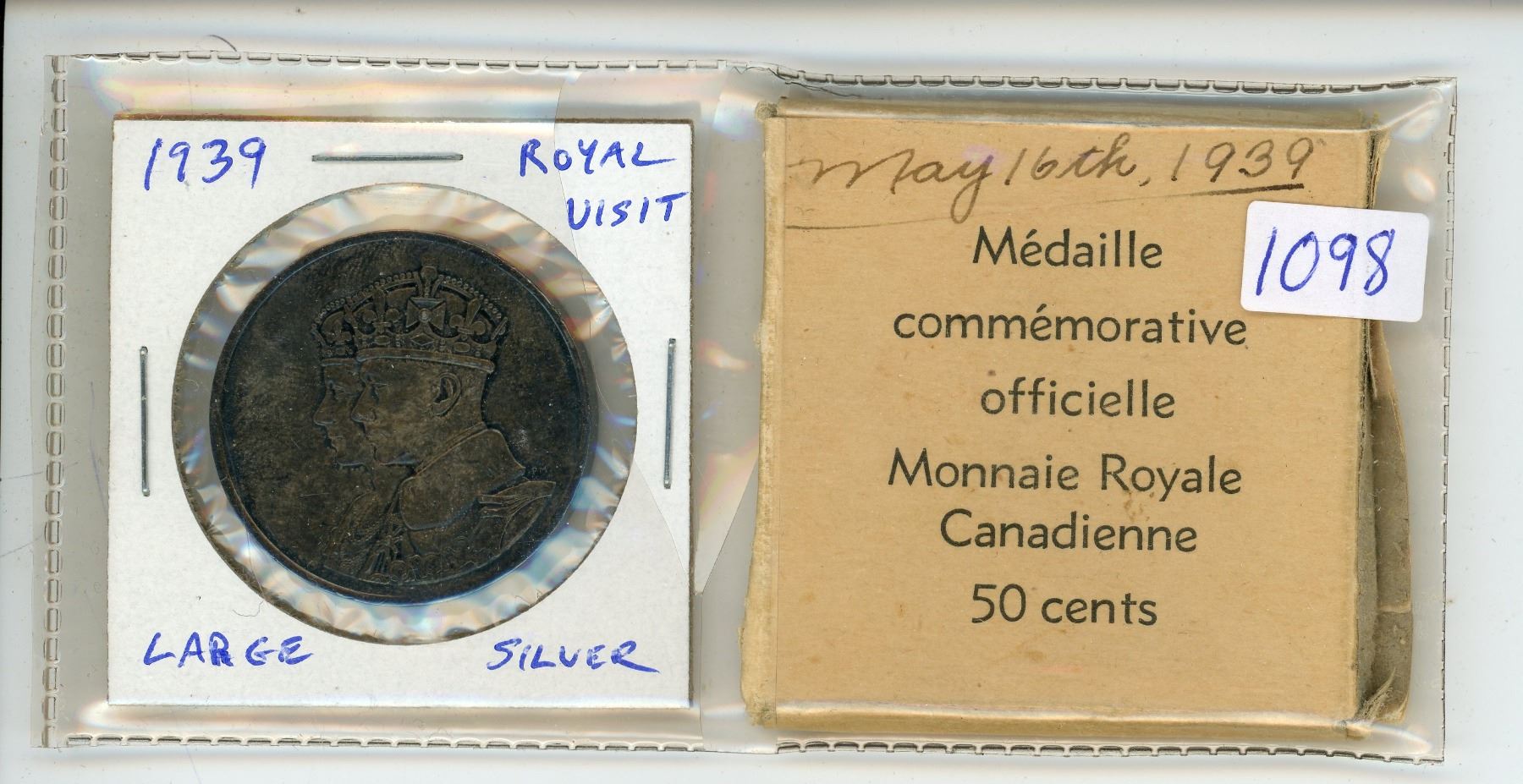 1939 Royal Visit Silver Medal. The large Silver Medal came in a box and cost 50 Cents. Box included and is dated May 16, 1939.