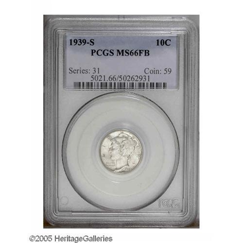 1939-S 10C MS66 Full Bands PCGS. A sharply struck, 1939-S[10C] MS66 Full Bands PCGS.