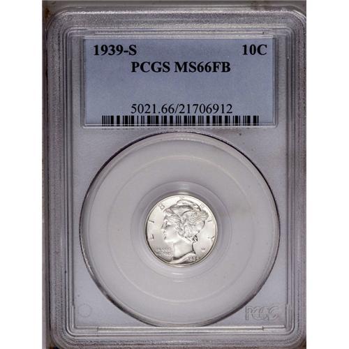 <B>1939-S<10C> MS66 Full Bands PCGS.</B></I> The sharp strike transcends the Full Bands to include all of the design elements, with the possible exception of the crossbar of the T in LIBERTY. Touches of tan-gold appear under magnification. A couple of minute marks are noted on Mercury's temple.