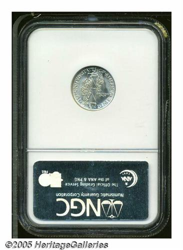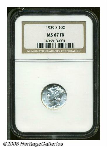 <B>1939-S<10C> MS67 Full Bands NGC.</B></I> A difficult issue to locate with Full Bands, this Superb Gem example combines intense luster and mark-free surfaces with a fully bright-white appearance. Population: 9 in 67 Full Bands, 1 finer (6/05).