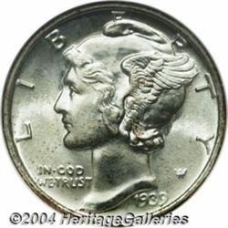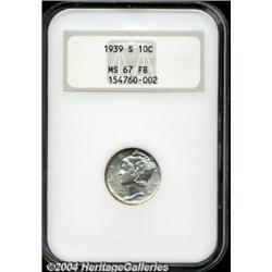 <B>1939-S<10C> MS67 Full Bands NGC.</B></I> A few dapples of russet color visit pristine, satiny surfaces that exude flashy luster. The design elements are sharply struck up throughout. Population: 6 in 67, 0 finer (7/04).<BR><I>From The Reed Hawn Collection of Mercury Dimes.</B></I> <BR><BR><B>Important notice:</B> Heritage usually auctions material at the rate of 200-250 lots per hour. On some occasions eBay Live bid software or the Internet may not be able to keep up with the pace of the auction. We recommend placing a realistic absentee bid now as insurance to avoid disappointment. Occasionally the auctioneer may eliminate or reject an eBay Live bid, and the auctioneer may also reopen a lot after the close of the eBay live bidding (usually because we missed an audience bid), and may reject your bid even if it shows you as the winning bidder. By bidding via eBay Live, you agree that Heritage may award the lot to another bidder at its sole discretion under the circumstances described above or any other reasonable circumstances. Since eBay bids are not shown to us until we open the lot on the floor, we treat those bids just like floor bids. In most cases the floor responds before the eBay bid is presented to us, due to Internet lag time, so for consistency we have made it a policy that floor bids are always considered first over tie eBay live bids. Also please note that all Heritage lots purchased through eBay Live carry a 20% Buyer's Premium. Please make sure you read the Terms and Conditions before you bid. </span></font></tr></table></td></tr></table>