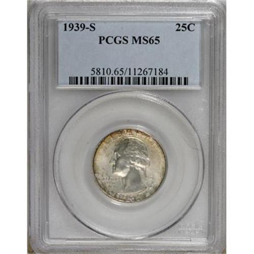 <B>1939-S 25C MS65 PCGS.</B></I> PCGS Population (472/271). NGC Census: (287/230). Mintage: 2,628,000. Numismedia Wsl. Price for NGC/PCGS coin in MS65: $265. (#5810)<BR><BR><B>Coin Engraver:</B> John Flanagan<BR><BR><b>Shipping:</b> Coins & Currency (<a target="_blank" href="http://www.heritageauctions.com/common/shipping.php">view shipping information</a>\)