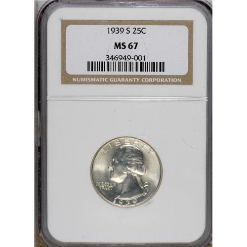 1939-S 25C MS67 NGC. A hint of gold toning decorates t