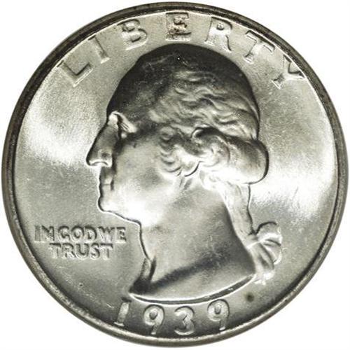 <B>1939-S<25C> MS67 NGC.</B></I> The 1939-S is obtainable in MS64 and MS65 with some searching, but the certified population decreases by about one-half for Premium Gems. MS67 coins, on the other hand, with about 40 examples known, are difficult to acquire. The current specimen exhibits radiant luster and speckles of gold-tan color, which is more prominent on the reverse. The design features are adequately struck. A light spot in the lower right (facing) obverse quadrant, as well as a few trivial contact marks on the eagle's torso are mentioned for accuracy. Close inspection reveals some minor die doubling on the date.<BR><I>From The Houston Collection of Washington Quarters.</B></I>