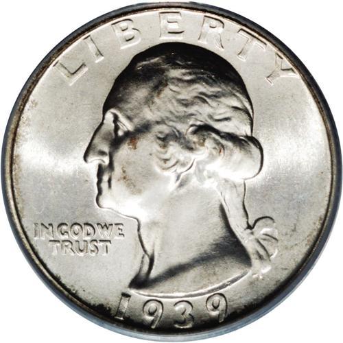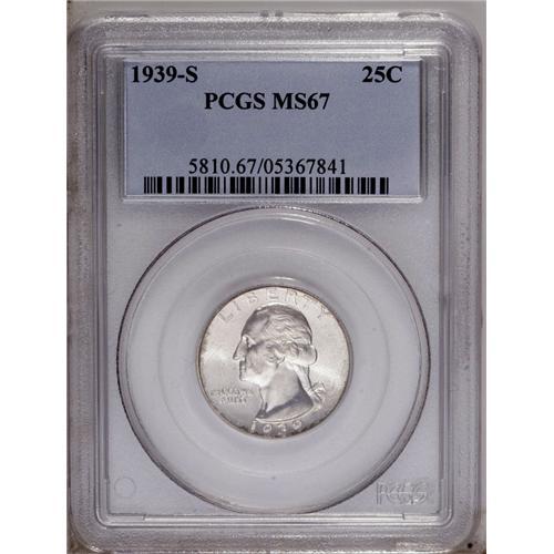 1939-S 25C MS67 PCGS. Bright, mostly snow-white surfac 1939-S[25C] MS67 PCGS.