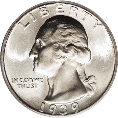 <B>1939-S<25C> MS67 PCGS.</B></I> Ex: Patrick Mullen Collection. A magnificently preserved, brilliant white '39-S that is well struck and has dazzling mint luster. There are a few spindly reverse die cracks near the margins, not unusual for high grade representatives of this scarcer issue. Population: 17 in 67, 0 finer (8/06).