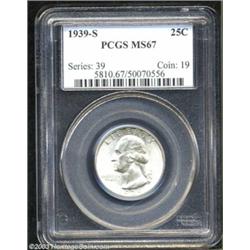 <table><tr><td><TABLE cellSpacing=0 cellPadding=0 width="100%" bgColor=#000000 border=0><TBODY> <TR><TD width="100%"><TABLE cellSpacing=1 cellPadding=3 width="100%" border=0><TBODY><TR><TD width="100%" bgColor=#79735c><FONT face=arial color=#ffffff size=3><B>Description</B> </FONT></TD></TR><TR><TD width="100%" bgColor=#ffffff><FONT face=arial size=2><B>1939-S 25C MS67 PCGS.</B></I> Very scarce at the MS67 level, only five other pieces have been so graded by PCGS with none finer at either of the major services (7/03). This is an originally brilliant coin that has soft, frosted mint luster. A thin die crack is seen at the top of each side. An uncommon opportunity for the specialist. </FONT></TD></TR></TBODY></TABLE></TD></TR></TBODY></TABLE><BR><A name=PricesRealized></A><TABLE cellSpacing=0 cellPadding=0 width="100%" bgColor=#000000 border=0><TBODY><TR><TD width="100%"><TABLE cellSpacing=1 cellPadding=3 width="100%" border=0><TBODY><TR><TD width="100%" bgColor=#79735c><A name=PR><FONT face=arial color=#ffffff size=3><B>Previous Prices from Heritage Auctions</B> </FONT></A></TD></TR><TR><TD bgColor=#f6f6ed><TABLE cellSpacing=0 cellPadding=0 width="100%" border=1><TBODY><TR><TD align=middle width="33%"><B>Date</B></TD><TD align=middle width="33%"><B>Service</B></TD><TD align=middle width="33%"><B>Price</B></TD></TR><TR bgColor=whitesmoke><TD width="33%"><B>03/01/2003</B></TD><TD width="33%">NGC</TD><TD width="33%">$3,910.00</TD></TR><TR bgColor=whitesmoke><TD width="33%"><B>02/24/2002</B></TD><TD width="33%">NGC</TD><TD width="33%">$718.75</TD></TR><TR bgColor=whitesmoke><TD width="33%"><B>08/07/1998</B></TD><TD width="33%">NGC</TD><TD width="33%">$862.50</TD></TR></TBODY></TABLE></TD></TR><TR><TD bgColor=#ffffff><FONT face=arial size=1 ?>PLEASE NOTE: All prices realized reflect the final hammer price PLUS the buyer's premium in auctions that charge a buyer's premium. Each item has a notation at the top of the listing indicating whether that lot included a buyer's premium. Example: A item that sells with a final hammer price of $100 and a 20% buyer's premium will display with a price realized of $120. All information listed is intended to be as accurate as possible, but errors are possible. Please use this guide carefully and inform us of any inaccuracies. </FONT></TD></TR></TBODY></TABLE></TD></TR></TBODY></TABLE><BR><TABLE cellSpacing=0 cellPadding=0 width="100%" bgColor=#000000 border=0><TBODY><TR><TD width="100%"><TABLE cellSpacing=1 cellPadding=3 width="100%" border=0><TBODY><TR><TD width="100%" bgColor=#79735c colSpan=6><FONT face=arial color=#ffffff size=3><B>Price Guide*</B> </FONT></TD></TR><TR bgColor=#f6f6ed><TD align=middle><B>Grade</B> </TD><TD align=middle><B>Coin World<BR>(Trends)</B> </TD><TD align=middle><B>Numismedia<BR>Retail</B> </TD><TD align=middle><B>Numismedia<BR>Wholesale</B> </TD><TD align=middle><B>Coin<BR>Universe</B> </TD><TD align=middle><B>Heritage<BR>Value Index</B> </TD></TR><TR bgColor=#ffffff><TD align=middle>66</TD><TD align=right>---</TD><TD align=right>$430.00</TD><TD align=right>$344.00</TD><TD align=right>$375.00</TD><TD align=right>$286.25</TD></TR><TR style="FONT-WEIGHT: bold" bgColor=#cccfdd><TD align=middle>67</TD><TD align=right>---</TD><TD align=right>---</TD><TD align=right>$850.00</TD><TD align=right>$8,500.00</TD><TD align=right>$5,950.00</TD></TR><TR bgColor=#ffffff><TD align=middle>68</TD><TD align=right>---</TD><TD align=right>---</TD><TD align=right>---</TD><TD align=right>---</TD><TD align=right>---</TD></TR><TR bgColor=#ffffff><TD colSpan=6><FONT size=1>*All information listed is intended to be as accurate as possible, but errors are possible. No item may be returned or refused based on this information which is provided as a service to our customers. You should contact each pricing source directly to determine the accuracy of this information. </FONT></TD></TR></TBODY></TABLE></TD></TR></TBODY></TABLE><BR><TABLE cellSpacing=0 cellPadding=0 width="100%" bgColor=#000000 border=0><TBODY><TR><TD width="100%"><TABLE cellSpacing=1 cellPadding=3 width="100%" border=0><TBODY><TR><TD width="100%" bgColor=#79735c><FONT face=arial color=#ffffff size=3><B>Population Guide</B> </FONT></TD></TR><TR bgColor=#ffffff><TD align=middle><!-- Begin Output of Population Grid--><TABLE cellSpacing=0 cellPadding=0 width="100%" border=0><TBODY><TR><TD vAlign=center><TABLE cellSpacing=0 width="100%" border=1 cellsadding="3"><TBODY><TR><TD vAlign=center><TABLE cellSpacing=0 cellPadding=3 width="100%" border=1><TBODY><TR><TD vAlign=center align=middle bgColor=#f0f1e8 colSpan=2 <CENTER><FONT face=Arial size=2><B>PCGS Pop </B></FONT><CENTER></CENTER></TD><TD vAlign=center align=middle bgColor=#f0f1e8 colSpan=2><CENTER><FONT face=Arial size=2><B>NGC Pop</B></CENTER></FONT></TD></TR><TR><TD vAlign=center><FONT face=Arial size=2>(67)</FONT> </TD><TD vAlign=center align=right><FONT face=Arial size=2>9</FONT> </TD><TD vAlign=center><FONT face=Arial size=2>(67)</FONT> </TD><TD vAlign=center align=right><FONT face=Arial size=2>19</FONT> </TD></TR><TR><TD vAlign=center><FONT face=Arial size=2>(>67)</FONT> </TD><TD vAlign=center align=right><FONT face=Arial size=2>0</FONT> </TD><TD vAlign=center><FONT face=Arial size=2>(>67)</FONT> </TD><TD vAlign=center align=right><FONT face=Arial size=2>0</FONT> </TD></TR></TBODY></TABLE></TD></TR></TBODY></TABLE></TD></TR></TBODY></TABLE><!-- End Output of Population Grid--></TD></TR></TBODY></TABLE></TD></TR></TBODY></TABLE><BR><TABLE cellSpacing=0 cellPadding=0 width="100%" bgColor=#000000 border=0><TBODY><TR> Important notice: Heritage usually auctions material at the rate of 200-250 lots per hour. On some occasions eBay Live bid software or the Internet may not be able to keep up with the pace of the auction. We recommend placing a realistic absentee bid now as insurance to avoid disappointment. Occasionally the auctioneer may eliminate or reject an eBay Live bid, and the auctioneer may also reopen a lot after the close of the eBay 