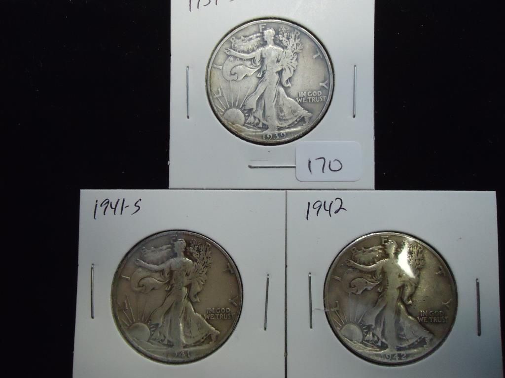 1939-S,41-S & 42 WALKING LIBERTY HALF DOLLARS