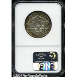 <B>1939-S<50C> Arkansas MS65 NGC.</B></I> Variegated honey-gold and pearl-gray patina dominates this well struck Gem. A couple of minor marks on Liberty's portrait prevent a decidedly higher grade. Just 2,100 sets were issued, along with a few pieces intended for assay. <BR><BR><B>Important notice:</B> Heritage usually auctions material at the rate of 200-250 lots per hour. On some occasions eBay Live bid software or the Internet may not be able to keep up with the pace of the auction. We recommend placing a realistic absentee bid now as insurance to avoid disappointment. Occasionally the auctioneer may eliminate or reject an eBay Live bid, and the auctioneer may also reopen a lot after the close of the eBay live bidding (usually because we missed an audience bid), and may reject your bid even if it shows you as the winning bidder. By bidding via eBay Live, you agree that Heritage may award the lot to another bidder at its sole discretion under the circumstances described above or any other reasonable circumstances. Since eBay bids are not shown to us until we open the lot on the floor, we treat those bids just like floor bids. In most cases the floor responds before the eBay bid is presented to us, due to Internet lag time, so for consistency we have made it a policy that floor bids are always considered first over tie eBay live bids. Also please note that all Heritage lots purchased through eBay Live carry a 20% Buyer's Premium. Please make sure you read the Terms and Conditions before you bid. </span></font></tr></table></td></tr></table>