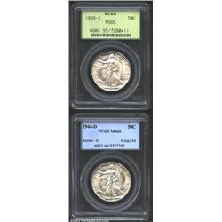 1939-S 50C MS65 PCGS, sharply struck with beautiful surfaces and a vertical die crack (as struck) across the eagle; and a 1944-D MS66 PCGS, well struck and exquisitely preserved with faint die polish lines (as made) in the fields. Both coins are lustrous and lightly toned. 2 coins Important notice: We expect to be auctioning lots at the rate of 200-250 per hour. Sometimes eBay Premier live bid software cannot keep up with that pace, so we strongly recommend that you place a realistic proxy bid now as insurance to avoid disappointment. Also please note that all Heritage/CAA lots purchased through eBay Premier carry a 20% Buyer's Premium. Please make sure you read the Terms and Conditions.