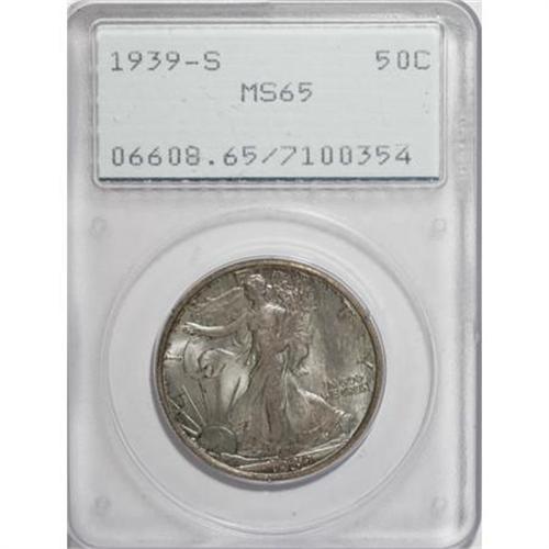 <B>1939-S 50C MS65 PCGS.</B></I> PCGS Population (1204/924). NGC Census: (656/539). Mintage: 2,552,000. Numismedia Wsl. Price for NGC/PCGS coin in MS65: $290. (#6608)<BR><BR><B>Coin Engraver:</B> Adolph A. Weinman<BR><BR><b>Shipping:</b> Coins & Currency (<a target="_blank" href="http://www.heritageauctions.com/common/shipping.php">view shipping information</a>)