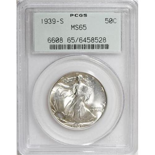 <B>1939-S 50C MS65 PCGS.</B></I> PCGS Population (1211/930). NGC Census: (659/542). Mintage: 2,552,000. Numismedia Wsl. Price for NGC/PCGS coin in MS65: $290. (#6608)<BR><BR><B>Coin Engraver:</B> Adolph A. Weinman<BR><BR><b>Shipping:</b> Coins & Currency (<a target="_blank" href="http://www.heritageauctions.com/common/shipping.php">view shipping information</a>)