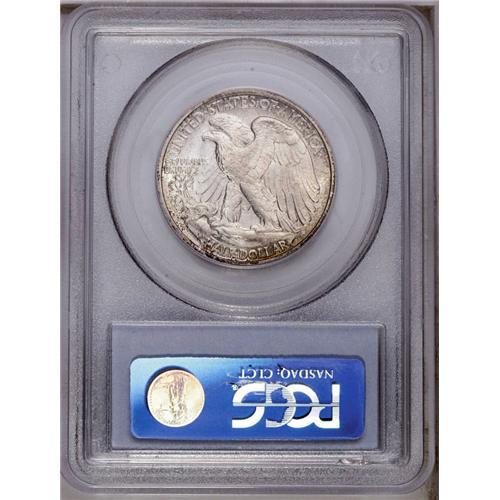 <B>1939-S<50C> MS66 PCGS.</B></I> Mostly white in the centers, with faint traces of olive-gold color around the peripheries. The surfaces are nearly pristine. Slight softness in some of the intricate central devices appears to be the only limiting factor. <BR><BR><B>Important notice:</B> Heritage usually auctions material at the rate of 200-250 lots per hour. On some occasions eBay Live bid software or the Internet may not be able to keep up with the pace of the auction. We recommend placing a realistic absentee bid now as insurance to avoid disappointment. Occasionally the auctioneer may eliminate or reject an eBay Live bid, and the auctioneer may also reopen a lot after the close of the eBay live bidding (usually because we missed an audience bid), and may reject your bid even if it shows you as the winning bidder. By bidding via eBay Live, you agree that Heritage may award the lot to another bidder at its sole discretion under the circumstances described above or any other reasonable circumstances. Since eBay bids are not shown to us until we open the lot on the floor, we treat those bids just like floor bids. In most cases the floor responds before the eBay bid is presented to us, due to Internet lag time, so for consistency we have made it a policy that floor bids are always considered first over tie eBay live bids. Also please note that all Heritage lots purchased through eBay Live carry a 20% Buyer's Premium. Please make sure you read the Terms and Conditions before you bid. This lot is being auctioned in conjunction with a live floor auction by Heritage Galleries & Auctioneers. All final auction and invoice information will be supplied by Heritage Galleries & Auctioneers, and all other information should be considered preliminary. Lot:2980 <BR><BR><B>Winning Notification and Billing:</B> After the FINAL session in this auction is complete, Heritage will send e-mail and snail mail invoices. This process normally takes several days. All final auction and invoice information will be supplied by Heritage Galleries & Auctioneers, and all other information should be considered preliminary. <BR><BR>This auction will be conducted on a live auction floor and over the Internet through eBay Live. If you choose to place an absentee bid, please take a moment to <font color='#0000ff'><u><a href='http://pages.ebay.com/liveauctions/help/before/laabsentee.html'>learn how eBay Live absentee bidding works</a></u></font><font color='#000000'>