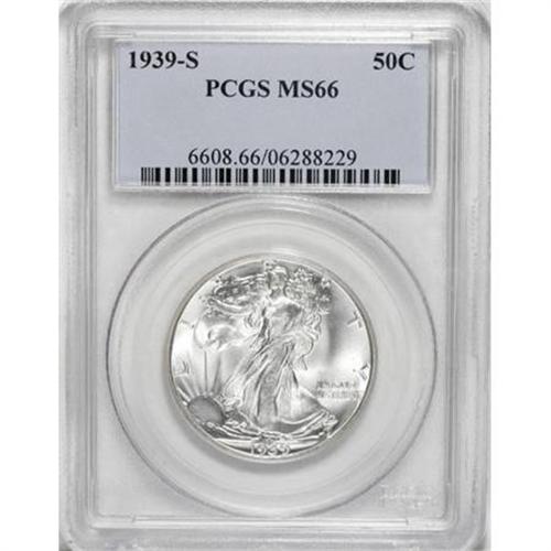 <B>1939-S 50C MS66 PCGS.</B></I> PCGS Population (809/91). NGC Census: (458/71). Mintage: 2,552,000. Numismedia Wsl. Price for NGC/PCGS coin in MS66: $525. (#6608)<BR><BR><B>Coin Engraver:</B> Adolph A. Weinman<BR><BR><b>Shipping:</b> Coins & Currency (<a target="_blank" href="http://www.heritageauctions.com/common/shipping.php">view shipping information</a>)