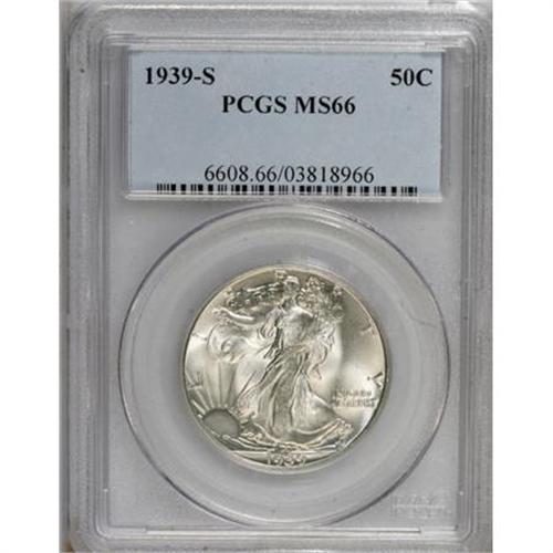 <B>1939-S 50C MS66 PCGS.</B></I> PCGS Population (812/91). NGC Census: (458/71). Mintage: 2,552,000. Numismedia Wsl. Price for NGC/PCGS coin in MS66: $525. (#6608)<BR><BR><B>Coin Engraver:</B> Adolph A. Weinman<BR><BR><b>Shipping:</b> Coins & Currency (<a target="_blank" href="http://www.heritageauctions.com/common/shipping.php">view shipping information</a>)