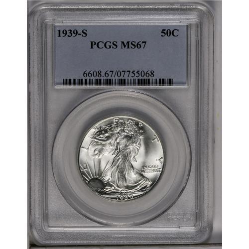 <B>1939-S<50C> MS67 PCGS.</B></I> This is a remarkable Superb Gem example with frosty surfaces. Both sides have fully brilliant silver luster. Population: 75 in 67, 0 finer (5/06).