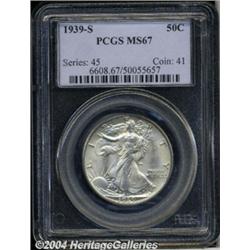 <B>1939-S<50C> MS67 PCGS.</B></I> A fully original piece with a thin coating of gray-golden patina. Sharply defined overall, a scarcity for this date and mint. Population: 62 in 67, none finer at either service (3/04).<BR><I>From The Del Rio Collection, Part One.</B></I> <BR><BR><B>Important notice:</B> Heritage usually auctions material at the rate of 200-250 lots per hour. On some occasions eBay Live bid software or the Internet may not be able to keep up with the pace of the auction. We recommend placing a realistic absentee bid now as insurance to avoid disappointment. Occasionally the auctioneer may eliminate or reject an eBay Live bid, and the auctioneer may also reopen a lot after the close of the eBay live bidding (usually because we missed an audience bid), and may reject your bid even if it shows you as the winning bidder. By bidding via eBay Live, you agree that Heritage may award the lot to another bidder at its sole discretion under the circumstances described above or any other reasonable circumstances. Since eBay bids are not shown to us until we open the lot on the floor, we treat those bids just like floor bids. In most cases the floor responds before the eBay bid is presented to us, due to Internet lag time, so for consistency we have made it a policy that floor bids are always considered first over tie eBay live bids. Also please note that all Heritage lots purchased through eBay Live carry a 20% Buyer's Premium. Please make sure you read the Terms and Conditions before you bid. </span></font></tr></table></td></tr></table>