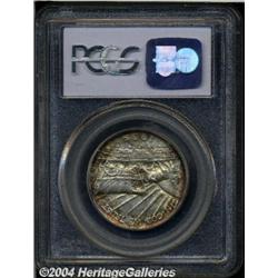 <B>1939-S<50C> Oregon MS67 PCGS.</B></I> Streaks of olive-orange patina adorn the obverse while the reverse is peripherally toned in dappled crimson-russet shades. The color further accents the elements of this timeless frontier-inspired design. <BR><BR><B>Important notice:</B> Heritage usually auctions material at the rate of 200-250 lots per hour. On some occasions eBay Live bid software or the Internet may not be able to keep up with the pace of the auction. We recommend placing a realistic absentee bid now as insurance to avoid disappointment. Occasionally the auctioneer may eliminate or reject an eBay Live bid, and the auctioneer may also reopen a lot after the close of the eBay live bidding (usually because we missed an audience bid), and may reject your bid even if it shows you as the winning bidder. By bidding via eBay Live, you agree that Heritage may award the lot to another bidder at its sole discretion under the circumstances described above or any other reasonable circumstances. Since eBay bids are not shown to us until we open the lot on the floor, we treat those bids just like floor bids. In most cases the floor responds before the eBay bid is presented to us, due to Internet lag time, so for consistency we have made it a policy that floor bids are always considered first over tie eBay live bids. Also please note that all Heritage lots purchased through eBay Live carry a 20% Buyer's Premium. Please make sure you read the Terms and Conditions before you bid.