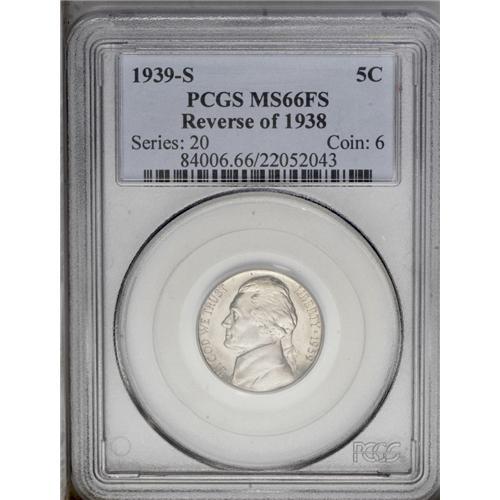 <B>1939-S<5C> Reverse of 1938 MS66 Full Steps PCGS.</B></I> A fully brilliant Premium Gem example with satiny luster and hints of champagne toning. Sharply struck and highly desirable. The vast majority of 1939-S nickels have this carryover reverse from 1938. Population: 11 in 66, 0 finer (4/06).