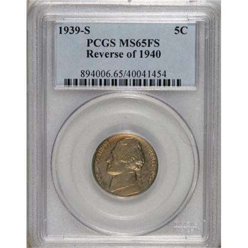 <B>1939-S 5C Reverse of 1940 MS65 Full Steps PCGS.</B></I> PCGS Population (27/13). NGC Census: (0/0). (#894006)<BR><BR><b>Shipping:</b> Coins & Currency (<a target="_blank" href="http://www.heritageauctions.com/common/shipping.php">view shipping information</a>)