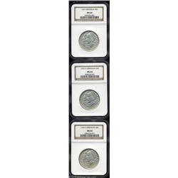 <table><tr><td><TABLE cellSpacing=0 cellPadding=0 width="100%" bgColor=#000000 border=0><TBODY> <TR><TD width="100%"><TABLE cellSpacing=1 cellPadding=3 width="100%" border=0><TBODY><TR><TD width="100%" bgColor=#79735c><FONT face=arial color=#ffffff size=3><B>Description</B> </FONT></TD></TR><TR><TD width="100%" bgColor=#ffffff><FONT face=arial size=2><B>1939 SET Arkansas PDS Set MS64 NGC.</B></I> <B>1939 MS64,</B></I> a faint fingerprint at 7 o'clock on the reverse, light slide marks on Liberty's portrait; <B>1939-D MS64,</B></I> wispy slide marks on Liberty's jaw but otherwise pristine; and a <B>1939-S MS64,</B></I> carefully preserved, milky gray and honey-gold color.<BR><I>From the Holman Family Collection.</B></I> (3 Coins) </FONT></TD></TR></TBODY></TABLE></TD></TR></TBODY></TABLE><BR><A name=PricesRealized></A><TABLE cellSpacing=0 cellPadding=0 width="100%" bgColor=#000000 border=0><TBODY><TR><TD width="100%"><TABLE cellSpacing=1 cellPadding=3 width="100%" border=0><TBODY><TR><TD width="100%" bgColor=#79735c><A name=PR><FONT face=arial color=#ffffff size=3><B>Previous Prices from Heritage Auctions</B> </FONT></A></TD></TR><TR><TD bgColor=#f6f6ed><TABLE cellSpacing=0 cellPadding=0 width="100%" border=1><TBODY><TR><TD align=middle width="33%"><B>Date</B></TD><TD align=middle width="33%"><B>Service</B></TD><TD align=middle width="33%"><B>Price</B></TD></TR><TR bgColor=whitesmoke><TD width="33%"><B>04/09/2002</B></TD><TD width="33%">PCGS</TD><TD width="33%">$833.75</TD></TR></TBODY></TABLE></TD></TR><TR><TD bgColor=#ffffff><FONT face=arial size=1 ?>PLEASE NOTE: All prices realized reflect the final hammer price PLUS the buyer's premium in auctions that charge a buyer's premium. Each item has a notation at the top of the listing indicating whether that lot included a buyer's premium. Example: A item that sells with a final hammer price of $100 and a 20% buyer's premium will display with a price realized of $120. All information listed is intended to be as accurate as possible, but errors are possible. Please use this guide carefully and inform us of any inaccuracies. </FONT></TD></TR></TBODY></TABLE></TD></TR></TBODY></TABLE><BR><TABLE cellSpacing=0 cellPadding=0 width="100%" bgColor=#000000 border=0><TBODY><TR><TD width="100%"><TABLE cellSpacing=1 cellPadding=3 width="100%" border=0><TBODY><TR><TD width="100%" bgColor=#79735c colSpan=6><FONT face=arial color=#ffffff size=3><B>Price Guide*</B> </FONT></TD></TR><TR bgColor=#f6f6ed><TD align=middle><B>Grade</B> </TD><TD align=middle><B>Coin World<BR>(Trends)</B> </TD><TD align=middle><B>Numismedia<BR>Retail</B> </TD><TD align=middle><B>Numismedia<BR>Wholesale</B> </TD><TD align=middle><B>Coin<BR>Universe</B> </TD><TD align=middle><B>Heritage<BR>Value Index</B> </TD></TR><TR><TD colSpan=6>No Pricing Data Available</TD></TR><TR bgColor=#ffffff><TD colSpan=6><FONT size=1>*All information listed is intended to be as accurate as possible, but errors are possible. No item may be returned or refused based on this information which is provided as a service to our customers. You should contact each pricing source directly to determine the accuracy of this information. </FONT></TD></TR></TBODY></TABLE></TD></TR></TBODY></TABLE><BR><TABLE cellSpacing=0 cellPadding=0 width="100%" bgColor=#000000 border=0><TBODY><TR><TD width="100%"><TABLE cellSpacing=1 cellPadding=3 width="100%" border=0><TBODY><TR><TD width="100%" bgColor=#79735c><FONT face=arial color=#ffffff size=3><B>Population Guide</B> </FONT></TD></TR><TR bgColor=#ffffff><TD align=middle><!-- Begin Output of Population Grid--><TABLE cellSpacing=0 cellPadding=0 width="100%" border=0><TBODY><TR><TD vAlign=center><TABLE cellSpacing=0 width="100%" border=1 cellsadding="3"><TBODY><TR><TD vAlign=center><TABLE cellSpacing=0 cellPadding=3 width="100%" border=1><TBODY><TR><TD vAlign=center align=middle bgColor=#f0f1e8 colSpan=2 <CENTER><FONT face=Arial size=2><B>PCGS Pop </B></FONT><CENTER></CENTER></TD><TD vAlign=center align=middle bgColor=#f0f1e8 colSpan=2><CENTER><FONT face=Arial size=2><B>NGC Pop</B></CENTER></FONT></TD></TR><TR><TD vAlign=center><FONT face=Arial size=2>(64)</FONT> </TD><TD vAlign=center align=right><FONT face=Arial size=2>0</FONT> </TD><TD vAlign=center><FONT face=Arial size=2>(64)</FONT> </TD><TD vAlign=center align=right><FONT face=Arial size=2>0</FONT> </TD></TR><TR><TD vAlign=center><FONT face=Arial size=2>(>64)</FONT> </TD><TD vAlign=center align=right><FONT face=Arial size=2>0</FONT> </TD><TD vAlign=center><FONT face=Arial size=2>(>64)</FONT> </TD><TD vAlign=center align=right><FONT face=Arial size=2>0</FONT> </TD></TR></TBODY></TABLE></TD></TR></TBODY></TABLE></TD></TR></TBODY></TABLE><!-- End Output of Population Grid--></TD></TR></TBODY></TABLE></TD></TR></TBODY></TABLE><BR><TABLE cellSpacing=0 cellPadding=0 width="100%" bgColor=#000000 border=0><TBODY><TR> 3 Coins Important notice: Heritage usually auctions material at the rate of 200-250 lots per hour. On some occasions eBay Live bid software or the Internet may not be able to keep up with the pace of the auction. We recommend placing a realistic absentee bid now as insurance to avoid disappointment. Occasionally the auctioneer may eliminate or reject an eBay Live bid, and the auctioneer may also reopen a lot after the close of the eBay live bidding (usually because we missed an audience bid), and may reject your bid even if it shows you as the winning bidder. By bidding via eBay Live, you agree that Heritage may award the lot to another bidder at its sole discretion under the circumstances described above or any other reasonable circumstances. Also please note that all Heritage lots purchased through eBay Live carry a 20% Buyer's Premium. Please make sure you read the Terms and Conditions before you bid.</TD></TR></TBODY></TABLE></TD></TR></TBODY></TABLE>