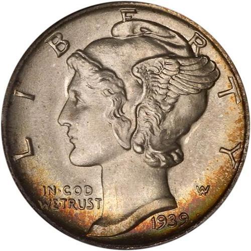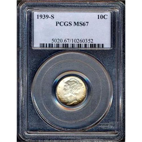 <b>1939-S Mercury Dime. PCGS graded MS67.</b> Brand spanking-fresh new, if you'll pardon the French, a coin swirling with satiny freshness throughout <b>(PCGS # 5020)</b> <i>