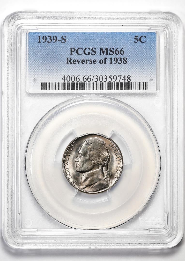 One 1939-S Reverse 1938 Jefferson Nickel Cent Coin PCGS MS66. PCGS Graded.