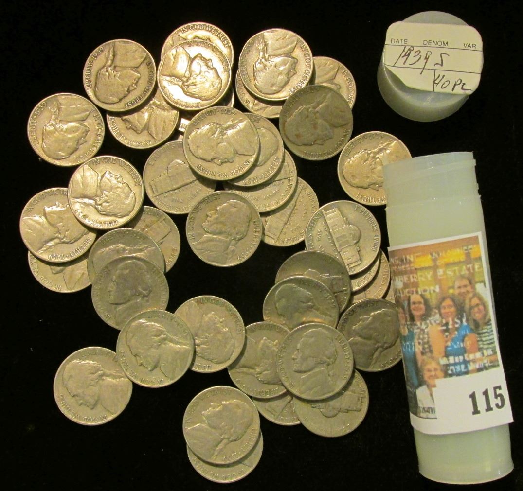 1939 S Solid date average circulated Jefferson Nickels in a plastic tube.