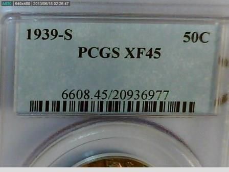 1939 S WALKING LIBERTY HALF DOLLAR. PCGS CERTIFIED XF45. PCGS CERT #20936977. COIN HAS GREAT DARK TONING ON THE OBVERSE AND REVERSE OF THE COIN. IT REALLY ADDS SOME CHARACTER!