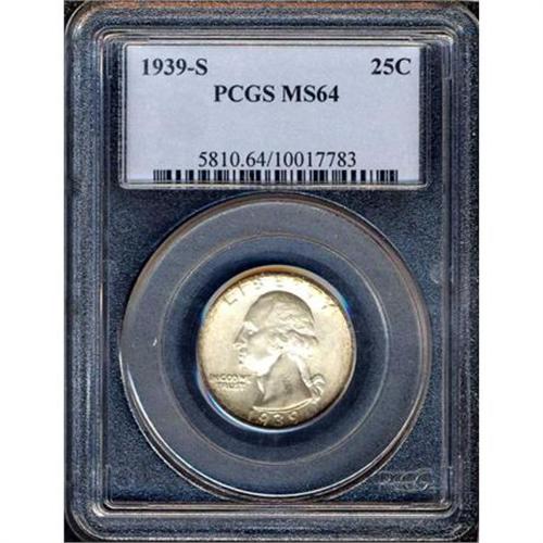 <b>1939-S Washington Quarter Dollar. PCGS graded MS64.</b> A refreshing brilliant example of this scarce S-mint date <b>(PCGS # 5810)</b> <i>
