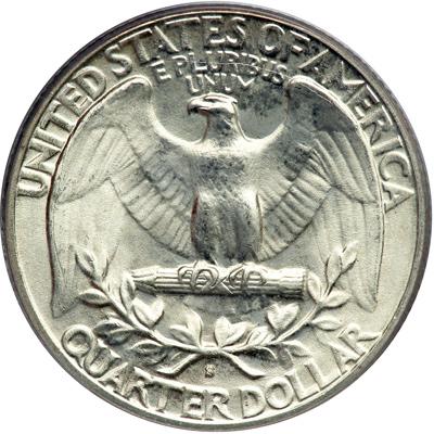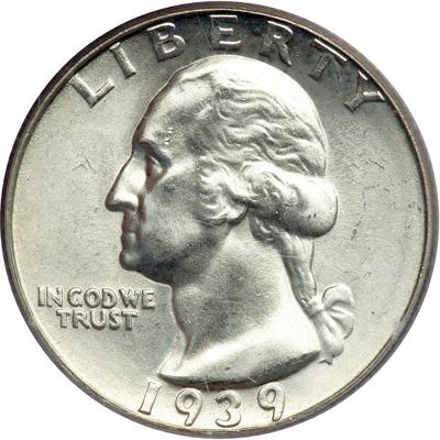 1939-S Washington Quarter Dollar. PCGS graded MS-65. A brilliant white gem that has a tiny reeding mark on the forehead. Otherwise pristine (PCGS # 5810) .