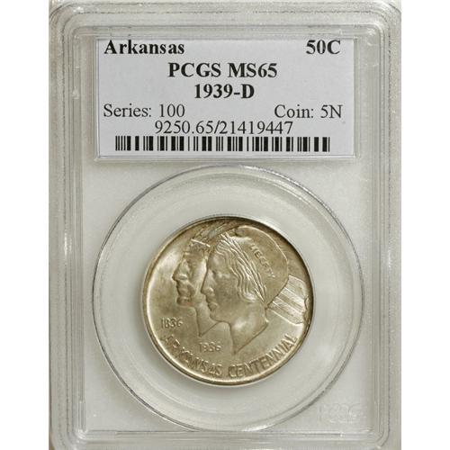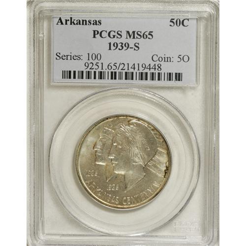 <B>1939 SET Arkansas PDS Set MS65 PCGS.</B></I> The low mintage set has consecutive PCGS serial numbers, and includes: <B>1939,</B></I> peach and ice-blue patina, a well struck Gem; <B>1939-D,</B></I> tan and lime shades, satiny and decisively struck; and a<B>1939-S,</B></I> almond-gold with glimpses of sky-blue, a powerful strike, splendidly preserved.<BR><BR><b>Shipping:</b> Coins & Currency (<a target="_blank" href="http://www.heritageauctions.com/common/shipping.php">view shipping information</a>)