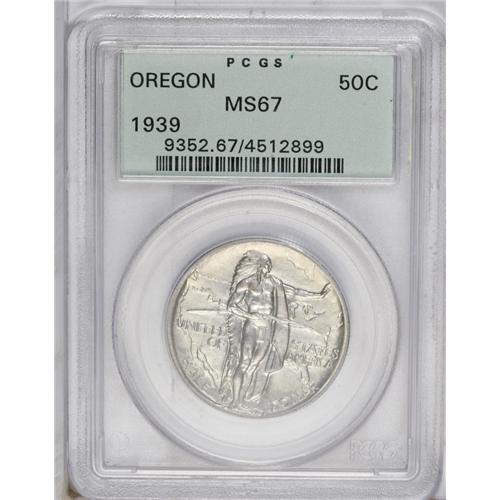<B>1939<img border='0' src='http://www.heritagecoins.com/images/star.gif' width=10 height=10>ET> Oregon PDS Set MS67 PCGS.</B></I> The set includes: <B>1939 MS67,</B></I> champagne obverse with golden-brown reverse tab toning; <B>1939-D MS67,</B></I> obverse tab toned in russet with essentially brilliant reverse; and <B>1939-S MS67,</B></I> light reddish-gold patina, all coins housed in green label holders.