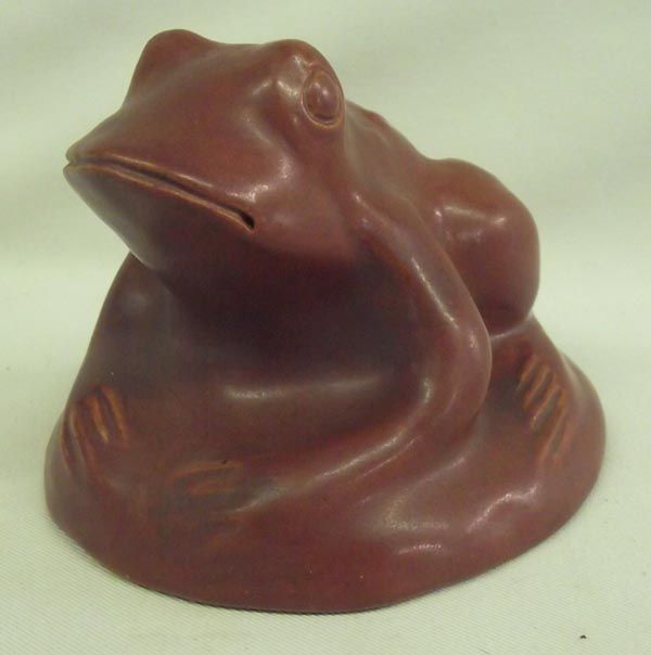 1939 Sequoyah Red Pottery Frog Figure - Ada. Beautiful little frog made by ''Ada'' of the Sequoyah Indian School. Nice glossy red finish. It is signed on the bottom, ''No. 23 Ada Sequoyah 1939.'' Measures 3.5'' diameter at the base and 3''H.