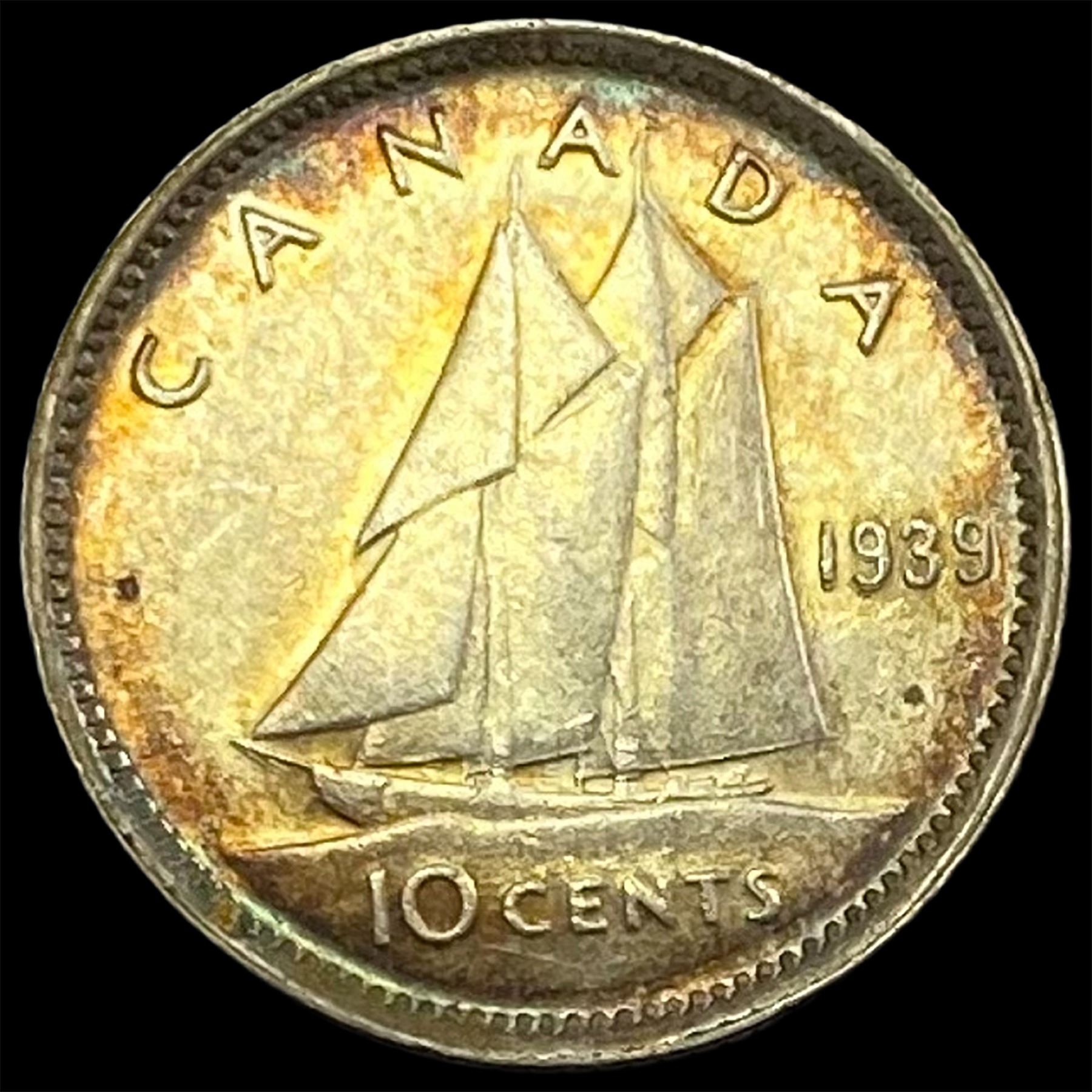 1939 Toned Canada Silver 10 Cents CHOICE AU