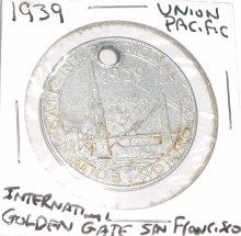 1939 UNION PACIFIC *INTERNATIONAL GOLDEN GATE* SAN FRANCISCO CALIFORNIA - HOLED!! ***Coin, Currency & All Items Listed in this auction - Grades, Conditions and Values are not Safe Deposit Coins LLC Responsibilty. Grades, Condition and Values are determined by Consigner(s) & Buyers ONLY***