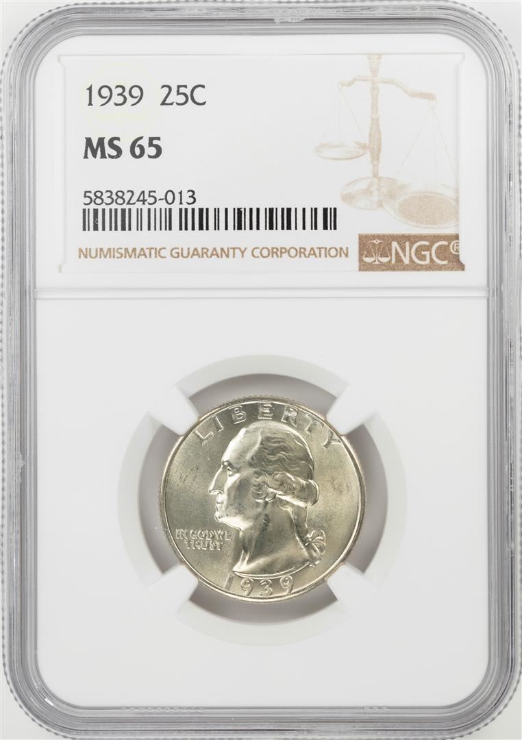 One 1939 Washington Quarter Coin NGC MS65. NGC Certified.