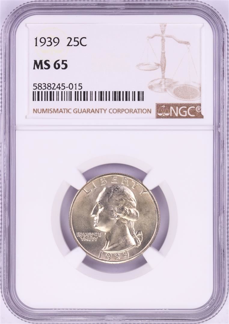 One 1939 Washington Quarter Coin NGC MS65. NGC Certified.