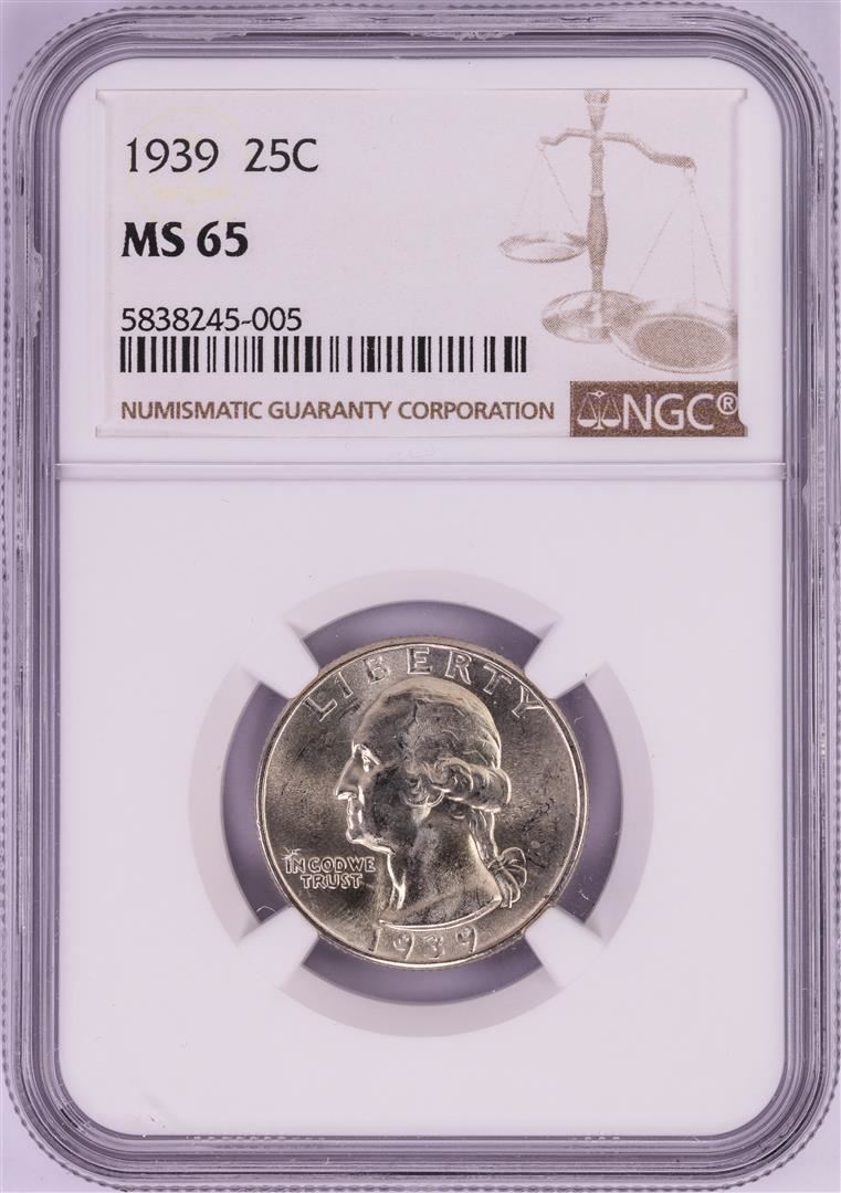 One 1939 Washington Quarter Coin NGC MS65. NGC Certified.