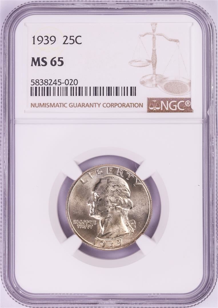 One 1939 Washington Quarter Coin NGC MS65. NGC Certified.